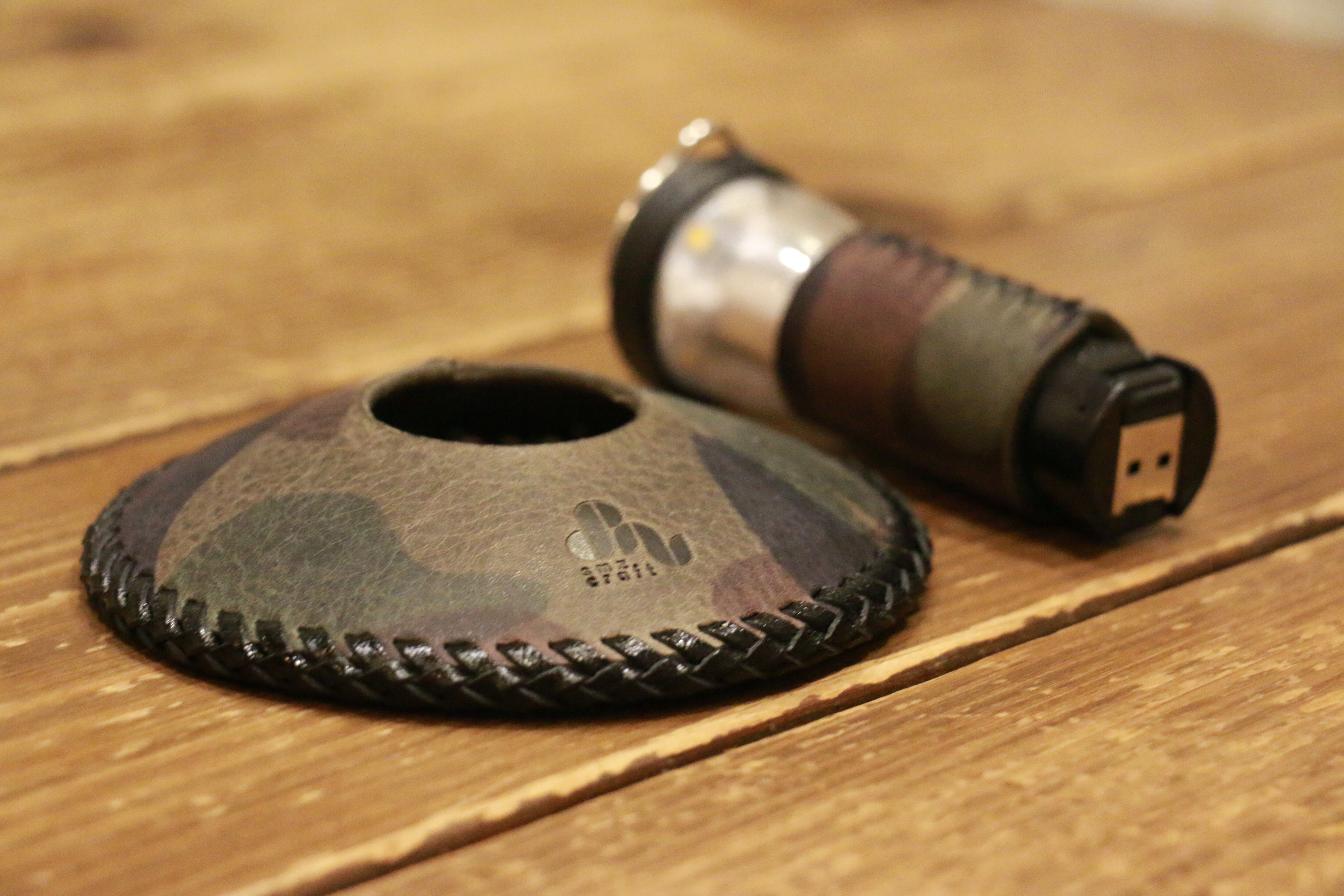 芯通し染料仕上げの革をベースに迷彩柄のプリント加工を施してありオイルを多く含んでおり、しっとりとした肌触りが魅力です。迷彩柄の濃淡、革の色味、シボ感などがイレギュラーなため使い込むと味わい深い艶や独特なエイジングが楽しめる革になります。