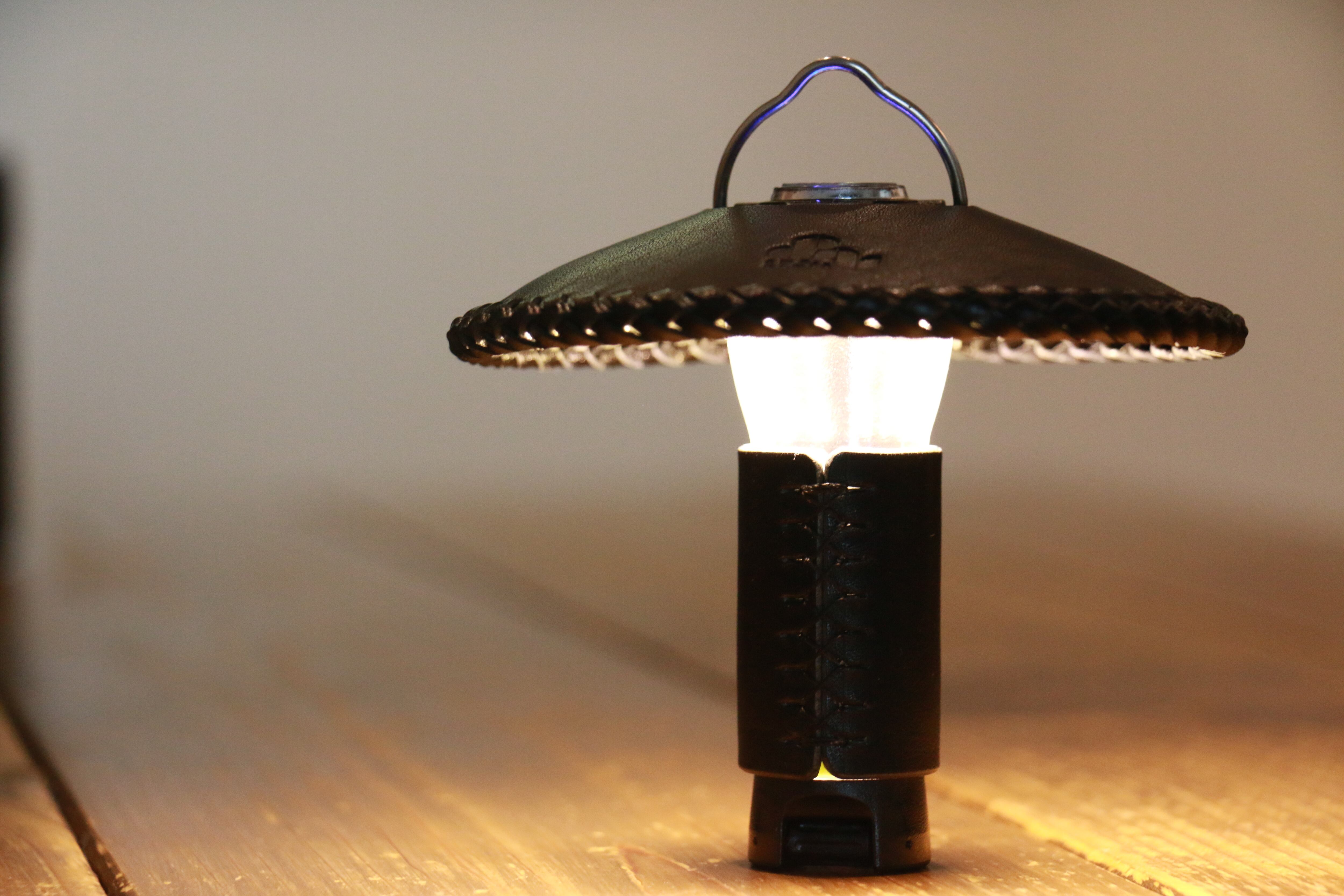 ひとつひとつ手作業でレザークラフトの技法、かがり縫いでシェードに施してあり、他にはあまり無いレザーシェードになります。